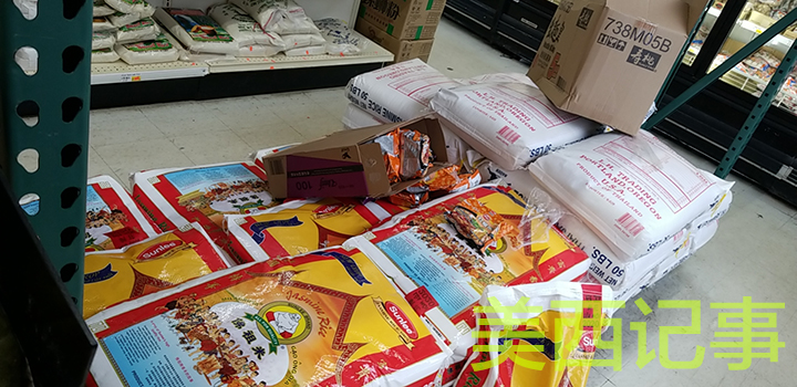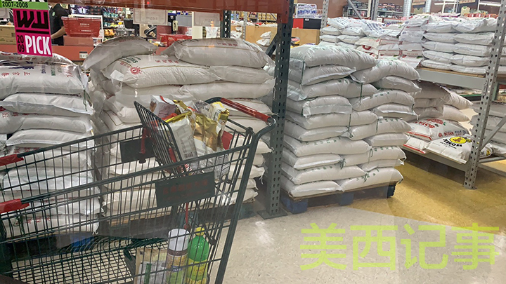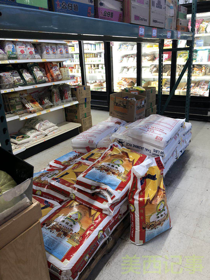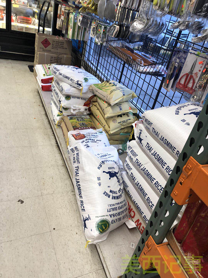 美西记事专门实地考察,发现82街的顺发超市除了本来受欢迎的牌子被卖走很多外,其他牌子的大米存量正常。