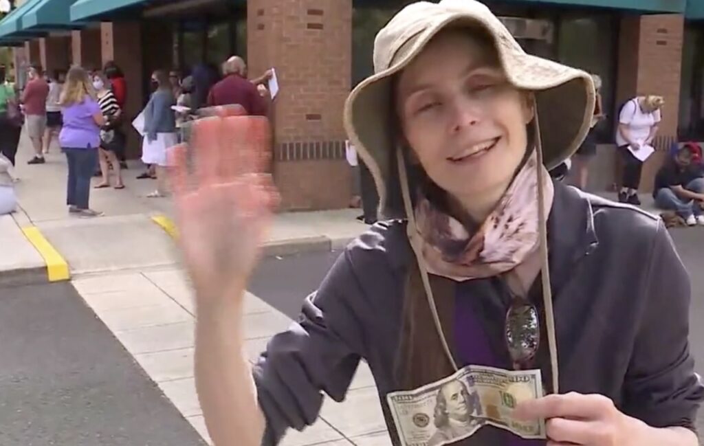 原文标题:Stranger hands out cash to people waiting for stimulus checks