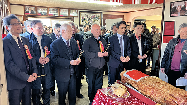 当天中午时分,旧金山总会元老团主席池洪湖先生、总理黄祯祥先生、及各位总会元老和波特兰萃胜支会会长容钧武及各位支会元老等在会所举行拜神仪式,祈祷神灵保佑华人在新的一年里幸福平安!