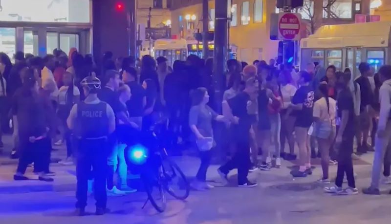 包括FOX等多个媒体报道,星期六晚上,数百名年轻人冲进芝加哥市中心的街道,砸碎车窗、袭击路人,游客在枪声中四处逃跑。