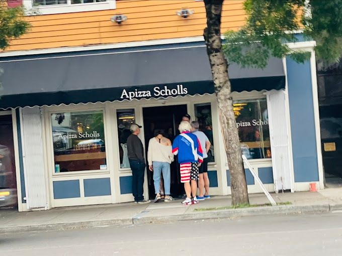 Apizza Scholls比萨店地址是4741 SE Hawthorne Blvd, Portland, OR 97215,营业时间是每天下午5点于晚上9点,或者直至比萨卖完。可以堂吃,可以外带。