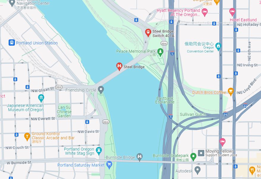 钢桥(Steel Bridge)由联合太平洋铁路 (Union Pacific Railroad)拥有和运营。