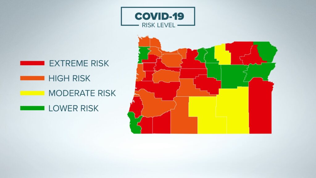 其中有10个县首次从“极端风险”下降,它们是:Clackamas(代表城市:俄勒冈市),Clatsop,Columbia,Deschutes,Hood River,Klamath,Linn,Multnomah(代表城市:波特兰)和Washington(代表城市:比弗顿)!
