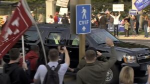 星期日,美国总统特朗普虽然感染新冠病毒两天了,住在军事医院里,但他似乎一刻都没停过,生龙活虎!下午,他乘坐专车短暂离开医院,向在医院外的支持者致意!