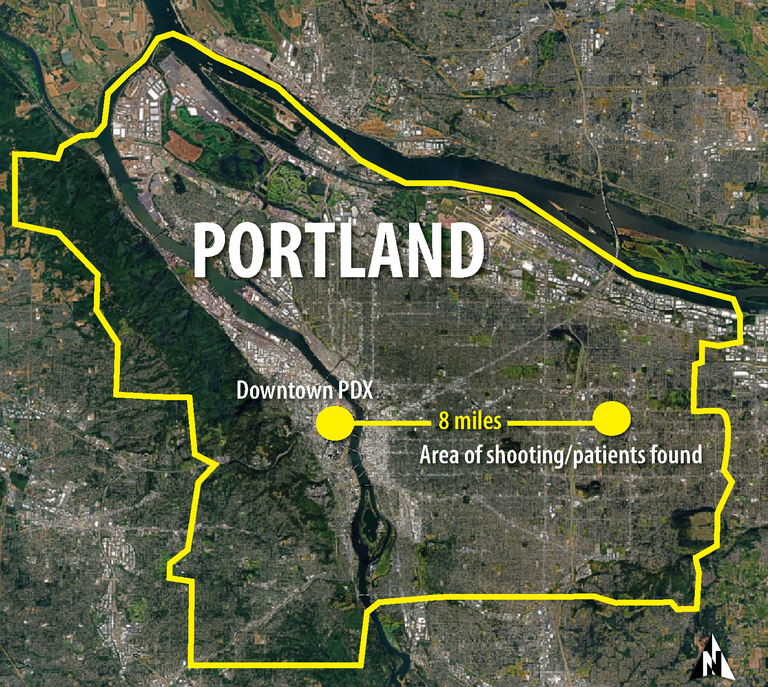 嫌疑车辆随即逃离,载着两名中弹者一路狂奔约2.5英里,直到 NE 146th Ave 与 East Burnside 附近停下,警方在现场发现一名男子与一名女子,均为枪伤,随后被送医。