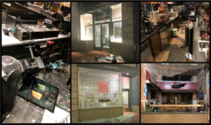 波特兰“跨年夜暴动”,珠宝店,一家银行,一个酒吧和两个星巴克都遭到了暴乱者的破坏。暴乱者使用燃烧弹、商业级烟花让警察节节败退。
