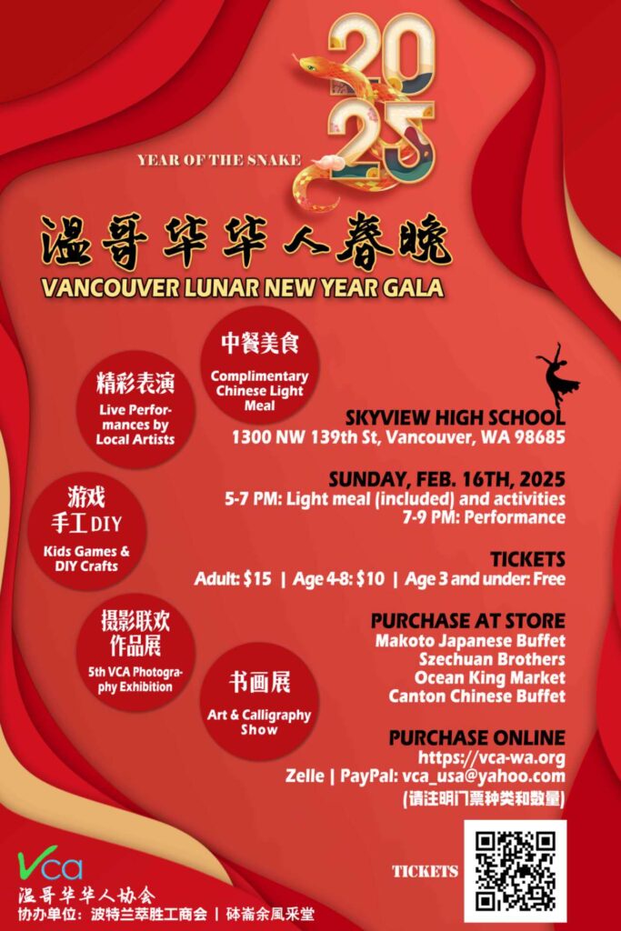 由温哥华华人协会主办、波特兰余风采堂、波特兰协胜工商会协办的温哥华华人春节联欢会,将于2025年2月16日在天景高中拉开帷幕。