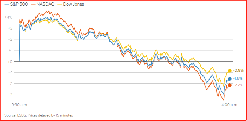 消息公布后,美股应声下跌。此前,全球市场因寄望特朗普可能愿意就各类商品与国家的关税政策进行谈判而普遍上涨。