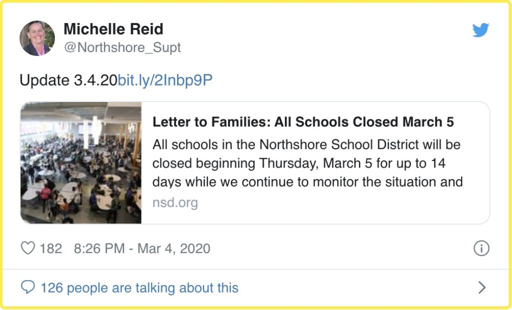Northshore学区在星期四也宣布关闭所有学校长达14天。