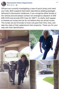 华盛顿州正在寻找两名涉嫌盗窃的“护士”,她们专偷摆在人家门前的包裹。