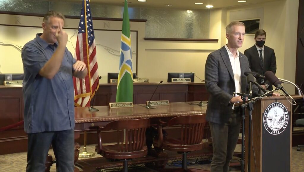 8月30日星期日,美国波特兰市长惠勒举行新闻发布会,重申不容忍暴力,并指责特朗普使波特兰的动乱恶化。