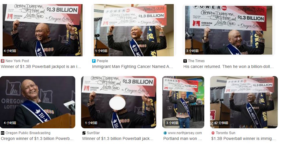 4月29日星期一,俄勒冈州福利官员公布,赢取13.26亿美元强力球头奖的幸运儿是一位来自老挝的移民,46岁的波特兰人程·“查理”·萨潘 (Cheng “Charlie” Saephan),患癌8年,上个星期刚接受了最新的化疗。