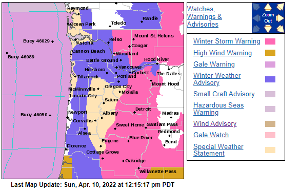 预警范围覆盖俄勒冈州西北部和华盛顿州西南部,包括波特兰、Wilsonville、Oregon City、Gresham、小温哥华等城市。