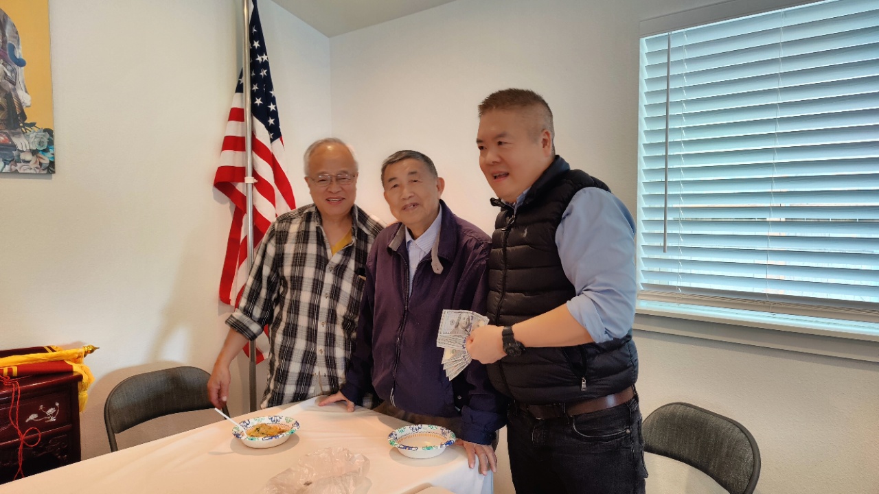由于堂所新组建不久,开支全靠各位会员及朋友捐款、义卖筹款。为了举办开幕典礼和春宴,我们堂所一直进行义捐,很多宗亲十分慷慨。席间,受邀来参加活动的我们堂所的盟友李焕民先生为我们堂所捐赠了$1000作为活动经费,盟友郑振灏师傅也捐赠了$100。大家热烈鼓掌答谢,气氛达到了高潮。