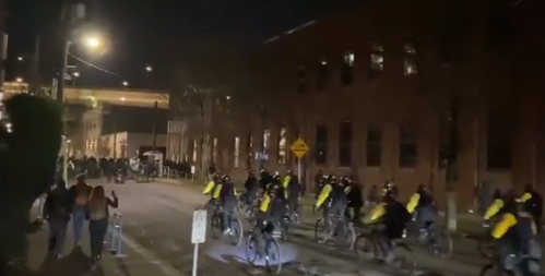 As soon as the march began Portland police on bikes and vehicles follow shortly behind. #Portland #Pdx #Protest #Police pic.twitter.com/zxOluGI0Di